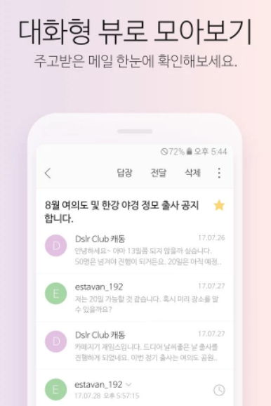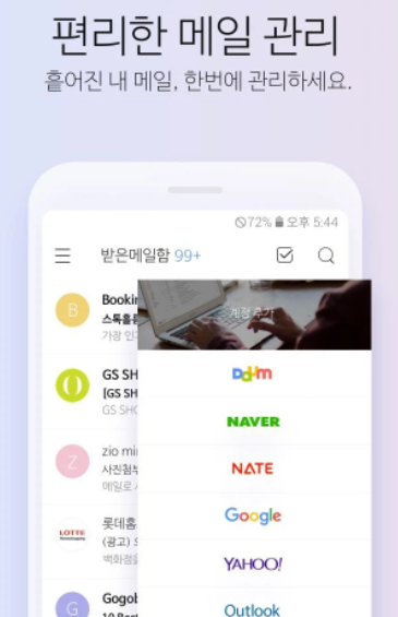 앱 하나로 모든 메일 관리 끝! Daum 메일 뿐 아니라 네이버, 구글 메일까지 연결해 쓸 수 있습니다! 지금 바로 설치해 보세요!